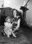 Mrs. Edward A. Uhler, of West Englewood, New Jersey, with her daughter, Jane Whitley. They are sitting on the grass next to a house.