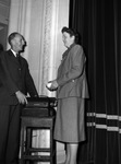 Tarrant County Association for the Handicapped president Frank Jackson and Miss Jo Kelly, director of education classes for spastic children.