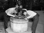 Decatur fifth-graders swarmed over Forest Park in happy abandon. Thursday was "Decatur Day" at the zoo. Teacher, Miss Bell Ford, brought fifth grade students on a field trip. Forest Park Zoo "Decatur Day" student participants (left to right) Wilton Van Mabry, Cameron Milligan, James Ford, Kenneth Lambert, and Kenneth Watson, fifth-graders from Decatur, Texas. The five young excursionists are shown drinking from the water fountain. Published in The Fort Worth Star-Telegram Morning Edition April 04, 1947.