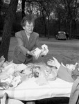 It was "Decatur Day" at Forest Park Zoo on Thursday. Decatur school teacher, Miss Bell Ford, brought a group of fifth-graders on a field trip to enjoy the day. In this photograph, Miss Ford is shown setting up a picnic lunch underneath the trees. On the table are sandwiches, fruit, and pickles. Published in The Fort Worth Star-Telegram Morning Edition April 04, 1947.