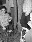 Bunny's Best Effort. Eight-year-old Richard Cushman, one of 150 Birdville School second and third graders on an outing at Forest Park Zoo Thursday, reached in a hollow tree and pulled out a prize Easter egg. The Easter rabbit was quite busy in Forest Park this week. Richard is shown smiling with his basket full of Easter eggs. He is holding one in his hand. Published in The Fort Worth Star-Telegram Morning Edition April 04, 1947.