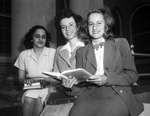 Brazilian girls, left to right, Jandira de Sousa, Sao Paulo, student at Baptist Seminary; Nauza Gentil Faulhaber, Rio de Janeiro, future Seminary student, and Iracema de Sausa, Sao Paulo, student at Decatur Baptist College. The students are each holding a book.