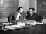 D. J. McFarland (left) and B. K. Isaacs looking over plans for their new federal truck sales and service agency.