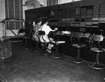 Mrs. Georgia Moss Thomas and Mrs. Lillian Glenn, supervisors, handling switchboards during a telephone strike.