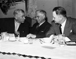 Texas Wesleyan College Development Fund Campaign participants (from left) Ed. L. Baker, Clyde Jones and Raymond Gee. The men are sitting at a dining table, all wearing suits.