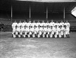 Fort Worth Cats baseball team players (top row, left to right) Bob Vickers, Carl Erskine, Irv Noren, Bob Ross, Ben Moore, Dwain Sloats, Monty Basgall, Willie Ramsdell, Bob Austin, Walt Faila, Dan Holden, Roy Boles, (bottom row, left to right) Bill Brightwell, Dan Long, Moe Santamauro, Jake Phillips, Gene Costello, Dan Ozark, Charles Samaklis, Leo Thomas, Dick Mlady, E. Krage, George Pfister and Manager Les Burge.