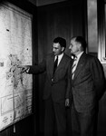 Looking at a map of Fort Worth are Joseph S. Ibbotson (left), new head librarian of the Fort Worth Public Library, with retiring head librarian Harry N. Peterson.