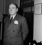 National Conference of Christians and Jews representative Reverend Edgar DeWitt Jones of Detroit, Michigan. Reverend Jones is wearing a double-breasted, pinstripe suit.