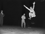 Long jumper Bennie Vann, brother of Bob Vann, track star. Man on the far left is unidentified.