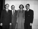 Southwestern Baptist Theological Seminary graduates (from left) Eugene Quinn, of Marion, Illinois; Irby Cox, of Vernon, Texas; Gladys Day, of Mobile, Alabama; and Dallas Alford, of Wellington, Texas. Quinn, Cox and Alford are wearing double-breasted suits. Miss Day is wearing a long-sleeve dress.