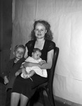 Mrs. Barbara Reno and her children, Johnny Carl, 3, and Lannis Suzette, 2 months old, who will leave for Michigan where Mrs. Reno will marry Marvin Bunce. Mrs. Reno is sitting in a chair, holding the infant in her lap. Johnny is standing beside her at left.