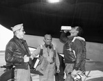 Pilots; Fort Worth Army Air Field; Eating & drinking; Super Fortresses; Military uniforms; Burch, George (Capt.); Gallavan, Robert (Lt.); Smith, Robert H. (Sgt.)