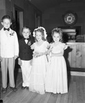 Oakhurst Methodist Church Sunday School benefit, Fort Worth, Tom Thumb wedding; from left, Raymond Barber, David E. Ross Jr., Martha Stanton, and Joyce Ann Hickson, 05/07/1947