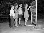 Lined up with their coins to contribute to the Star-Telegram sponsored animal buying fund are (left to right) Johnnie Adams, Belba Jean Orr, Emanuel Lee Carson, and Sharon Simpson. The youngsters were among the Charles Nash Elementary School first-graders who toured Forest Park Zoo with their teacher, Mrs. Pearl Newsom. The fund is the Star-Telegram Noah's Ark Fund. Published in The Fort Worth Star-Telegram Morning Edition May 08, 1947.