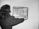 Cheery Boost. Tiny Pamela Ewell submits this cheery boost for the $4,000 Ark Fund, a beautifully colored book telling why every lawyer, doctor, merchant and daddy in Fort Worth should contribute. Photograph of a book held against a wall by unknown female. Published in The Fort Worth Star-Telegram Morning Edition May 11, 1947.