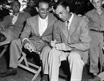 Toney Penna (left) and Ben Hogan autographing golf balls at the Colonial National Invitation Tournament.