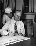 Fort Worth Women's City Golf Tournament's Polly Riley watching L. W. (Smiley) Rowland and Glen Garden pro, check her score.