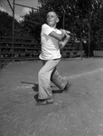 Young baseball player Curtis Coates at bat.