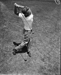 Douglas Higgins, Texas Wesleyan Colllege (T. W. C.) baseball star, in castle at the Fort Worth City Golf Tournament being played at the Rockwood Golf and County Club.