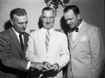 Basketball clinic instructor include Chair Bee (left) of Long Island University, Jack Gary of the University of Texas and H. R. (Hub) McQuillan, clinic director.