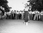 Staff Sergeant Harold (Red) Ridgley driving down a fairway at the Fort Worth City Golf Tournament being played at the Rockwood Golf and County Club.