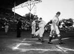 Fort Worth Cats vs.Beaumont Exporters baseball game. Bill Capps, Beaumont player after crossing home plate shows the umpire the part of his foot that touched the plate.