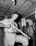 Shreveport Sports baseball team player Chet Hajduk, taping a bat.