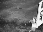 The image shows a foundation crack in the red brick dormitory sold to North Texas Agricultural College (NTAC) by the Federal Housing Authority. Published in Fort Worth Star-Telegram morning edition July 2, 1947.