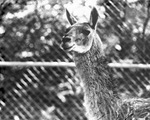 New huanaco (or guanaco) purchased from Detroit at Fort Worth's Forest Park Zoo. Newly bereaved, the new huanaco at Forest Park Zoo, who became a widower just before he left Detroit. His wife's neck was broken in a loading accident. It may account for his proud haunted look, but zoo director Hamilton Hittson thinks not. They're funny animals to begin with. Published in The Fort Worth Star-Telegram Morning Edition July 18, 1947.