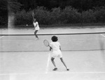 Tennis players Ruth Pate and Joan Webb during a match.