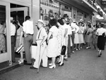 Line of baseball fans buying tickets to the Fort Worth Cats vs. Houston Buffalos game.