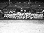 Group of Fort Worth Cats in front of a dugout, photographerd for a piece in the Star-Telegram's Society page.