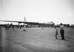 shot of crowd around the B-36 which was dedicated as "City of Fort Worth." The airplane is pictured with people walking around .