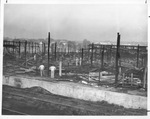 Burned sheep pens in Fort Worth stockyards after fire, 08/21/1947