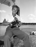 Glen Garden Invitation Tournament golfer Bob Watson of Wichita Falls, Texas, 54 hole leader, pours a drink after playing a round.