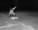Fort Worth Cats baseball team "small fry" Tommy Schalk, 4, doing some fancy base running.