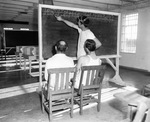 Convict prisoner at Darrington Prison Farm in Brazoria County, south of Houston, teaches illiterate prisoners how to write, 09/19/1947