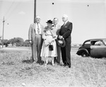 Polytechnic Presbyterian Church groundbreaking; Jennie Stevens, 101 year old member; left to right, C. E. Snelson, contractor; C. M. Herring, church building committee; Reverend James K. Thompson, 09/28/1947
