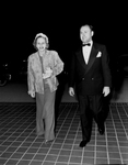 Reception and dinner honoring General and Mrs. D. D. Eisenhower and Margaret Truman. Amon Carter Junior standing beside an unidentified woman. They are both smiling as they look forward.