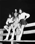 Three of 32 Agitates, North Texas Agricultural College (N. T. A. C.) women's drill team, are (from left) Wanda Norwood of Hobbs, New Mexico; Annette Collier and Mary Ann Beckler, both of Dallas, Texas.