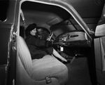 Mrs. Eleanor McKinnon examines a new 1948 Hudson automobile.