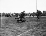 Image shows a Football Game between North Texas Agricultural College (NTAC) and John Tarleton Agricultural College. The shot shows a football player carrying a football during game.