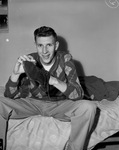 Basketball player Frank Kudlaty, Texas Christian University (T. C. U.), polishing shoes.