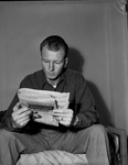 Basketball player Nolan Weeks, Texas Christian University (T. C. U.), reading.