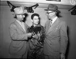 Texas Christian University (T. C. U.) basketball player Ted Nicksick receiving an award from tournament Director George Whitman (right) and Herb Joseph.