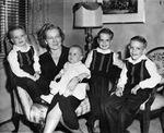 Mrs. Elizabeth (William Alvin) Moncrief holding baby Richard Moncrief, Junior. Her grandsons beside her are wearing matching sweaters (left to right) William Alvin Moncrief III, Richard Wesley Moncrief and Herbert Moncrief.