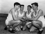 Southwestern Recreation Meet track athletes (from left) Horace Maddux, Johnny Bradford, Duff Massey, M. B. Easter.