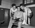 Technical High School track coach Bill Roark (center) with Neel Corder (left) and Benedict Nieswiadomy.