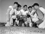 Baseball. 7-AA. Tech catcher Dick Miller, in foreground, right. Others, left to right, Bob McKee, Charles Bennett, Chick Urquidi and Jerry Longley.