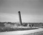 Arlington Heights landmark demolition of 75 foot incinerator, beginning to lean, 03/27/1948